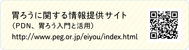 胃ろうを造設しても今まで通り、口から食事をとることができます。胃ろうからの栄養で元気になると、食事量が増えてくる方もいます。好きな食べ物を口から食べ、不足分の栄養を胃ろうから注入することが多いです。