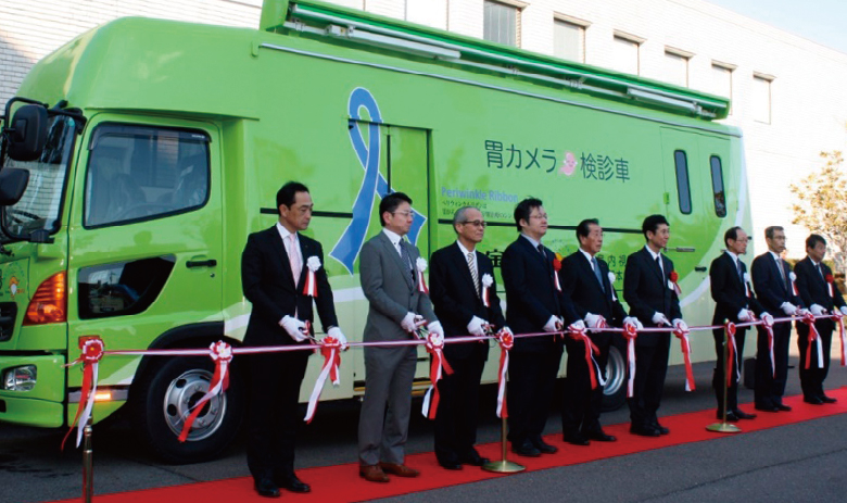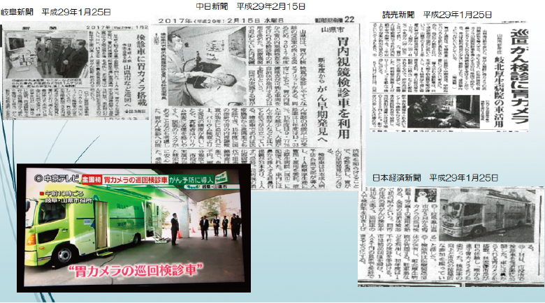 JA岐阜厚生連は岐阜県下最大の医療ネットワークを持つ組織で、8つの地域の病院群を中心に、医療・健康管理・保健資材・福祉・訪問看護・看護師養成事業など行っています。巡回検診及び病院内での施設検診に積極的に取り組み、生活習慣病やがんの早期発見に努めています。2017年度からは経鼻胃内視鏡を搭載した巡回検診車を導入し住民胃がん検診への運用を開始しています。巡回型胃内視鏡検診車としては全国3台目でありますが、住民胃がん検診に導入しているのは全国初の取り組みです。